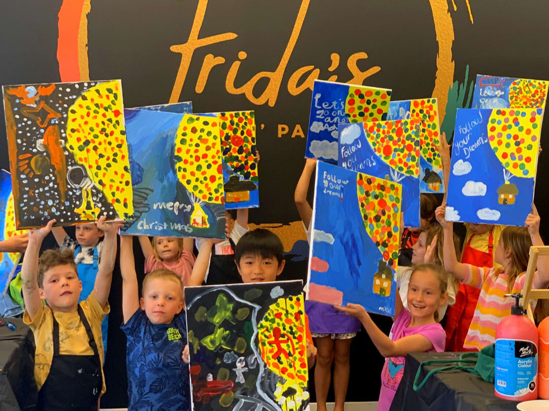 Our Frida's artist will teach the class step-by-step, and between steps we have family-friendly tunes to sing along to. Our family sessions are created for families with kids between 6-17 years old.